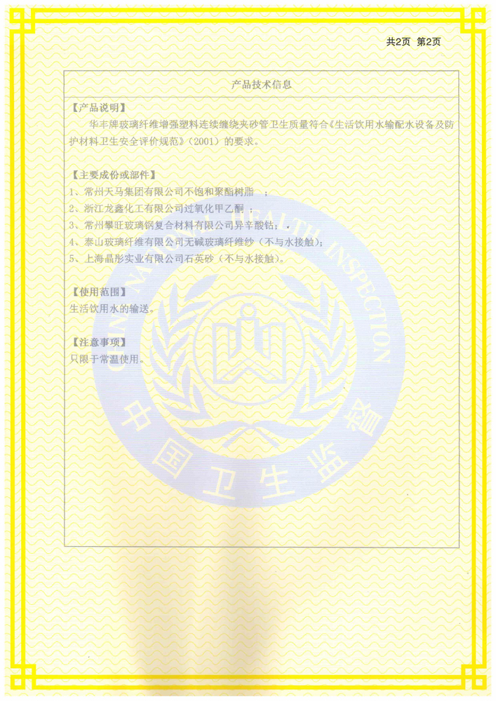 連續纏繞玻璃鋼管衛生許可批件2
