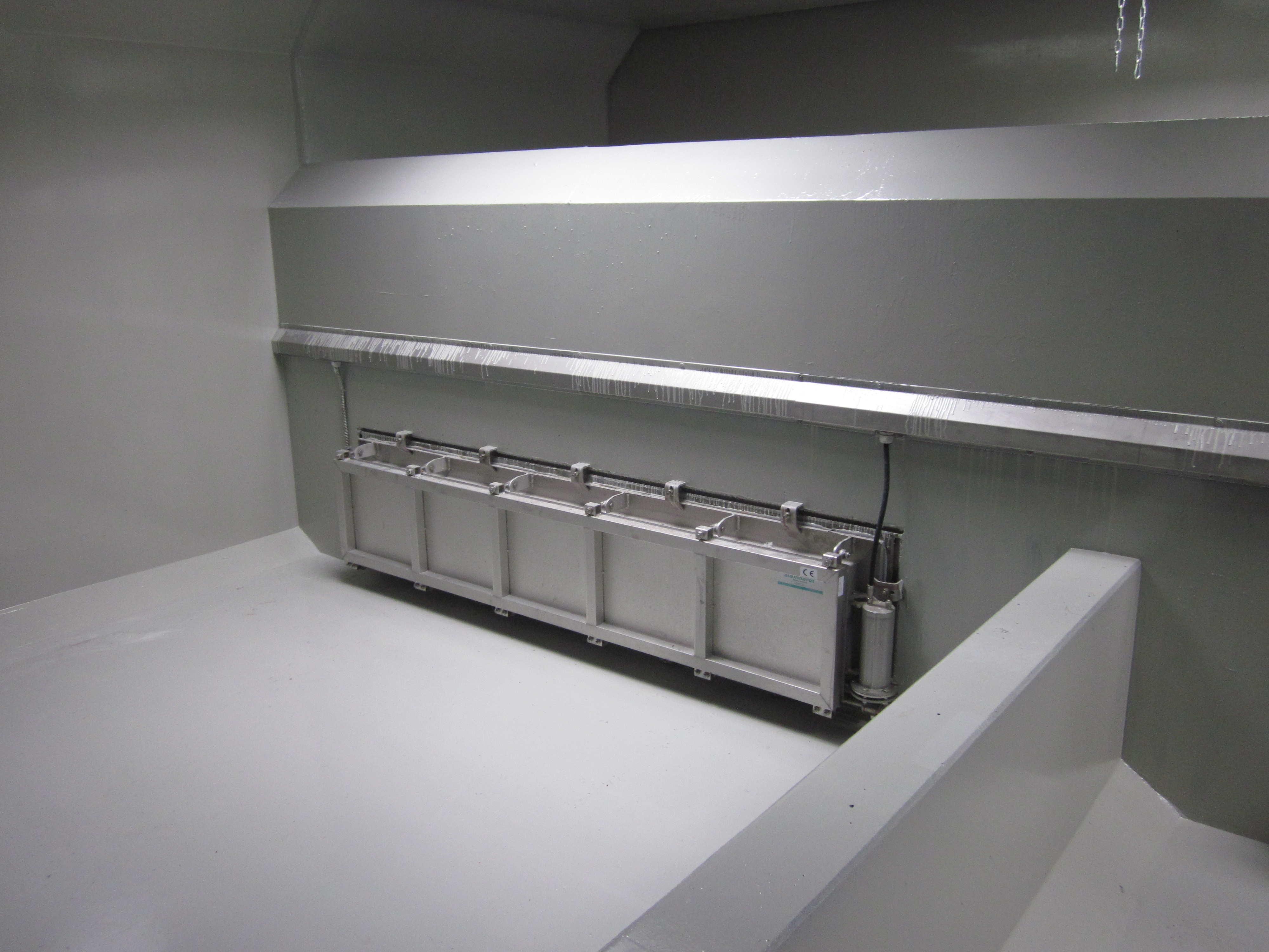 關于門式沖洗系統的常識:沖洗系統的蓄水能力由廊道的長度和寬度、廊道的坡度、進水水質等因素決定。門式沖洗設備沖水門的功率由出水水箱的大小和高度決定。沖洗的頻率和時間主要取決于兩個因素:
